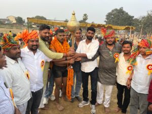 रूद्रपुर देवरियाशुक्रवार को नगर के सतासी इंटर कॉलेज के खेल मैदान पर प्रदेश स्तरीय दंगल प्रतियोगिता में देवरिया के तिवई पहलवान अवेधश यादव ने मऊ के शिवम को हरा दिया। इस अवसर पर उन्हे पूर्वांचल केसरी का खिताब से सम्मानित किया गया। अखाड़े पर प्रतियोगिता की शुरुआत तथा विजेता, उपविजेता पहलवानों को समाजसेवी मनमथ मणि त्रिपाठी ने गदा और नकद देकर पुरस्कृत किया।