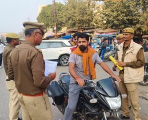 देवरिया यातायात पुलिस द्वारा “यातायात माह – नवम्बर 2025” के अंतर्गत जिलेभर में विशेष चेकिंग अभियान चलाया गया। अभियान के दौरान बिना हेलमेट, गलत नंबर प्लेट, तीन सवारी बैठाकर स्टंट करने वाले वाहन चालकों, सड़क किनारे यातायात बाधित करने वाले बस, ऑटो और ई-रिक्शा संचालकों तथा नो पार्किंग क्षेत्र में वाहन खड़े करने वालों के विरुद्ध एम. वी. एक्ट के तहत कार्रवाई की गई।अभियान के दौरान कुल 169 वाहनों का ई-चालान किया गया तथा 4 वाहनों को सीज किया गया।साथ ही वाहन चालकों और पैदल यात्रियों को पंपलेट वितरित कर यातायात नियमों का पालन करने के लिए जागरूक किया गया।इस कार्रवाई से यह संदेश दिया गया कि–यातायात नियमों का पालन सभी के लिए अनिवार्य है।इससे सड़क दुर्घटनाओं में कमी आती है।नियमों का उल्लंघन करने वालों पर सख्त कार्रवाई की जाएगी।
